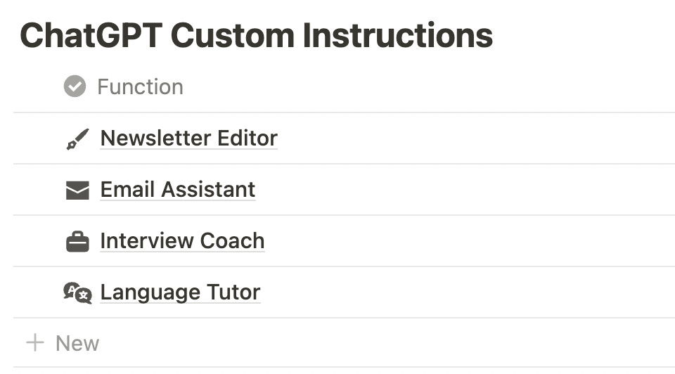 As of now, ChatGPT does not support saving multiple Custom Instructions. However, you can create a convenient database to store your most useful prompts, ensuring quick access whenever you need them 👇