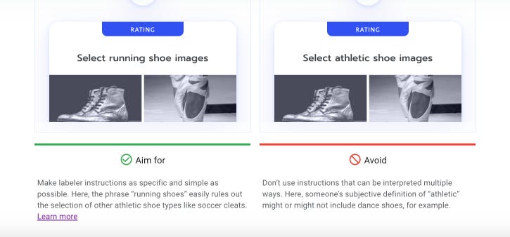 Invest early in robust data practices to ensure quality outputs. For example, if you’re asking users to label data, make sure you frame your question so they answer as objectively as possible.