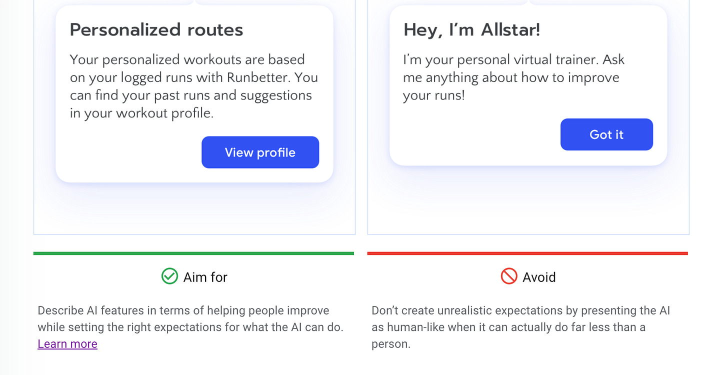 A lot of you are working on bringing delightful AI experiences to your products. And we get it — it’s a massive value add, we want to seem ahead of the curve, and most of all, it’s cool. So I read the whole Google’s People + AI Handbook and summarized our key takeaways below (with some helpful screenshots!). Here’s our 5 key-point checklist to bake AI into your products, the right way.